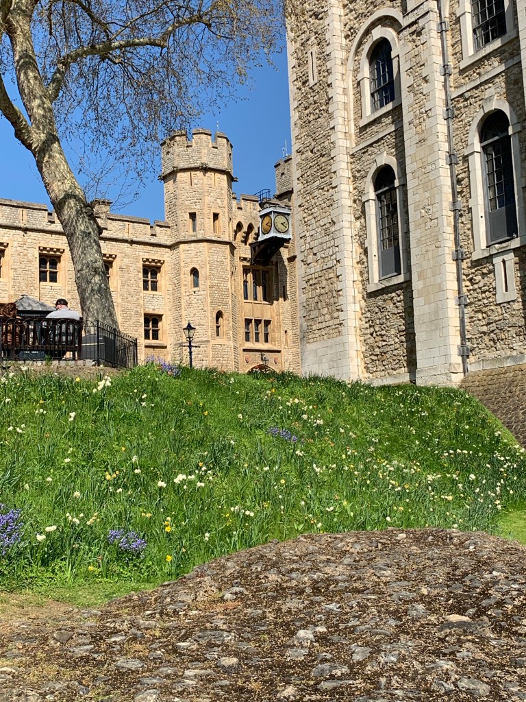 While at the Tower, Julie found a plaquard that talked about the grounds. Besides the usual lawns and shurbs, in 2022 several areas in the moat were planted with wildflowers and native plants to create a Superbloom. This created a haven for pollinators and local birds. This has continued, and it’s interesting to see the some of the hillsides looking stunning, and a little less manicured. You can read more about this in the Historic Royal Palaces website under the Tower of London Superbloom.