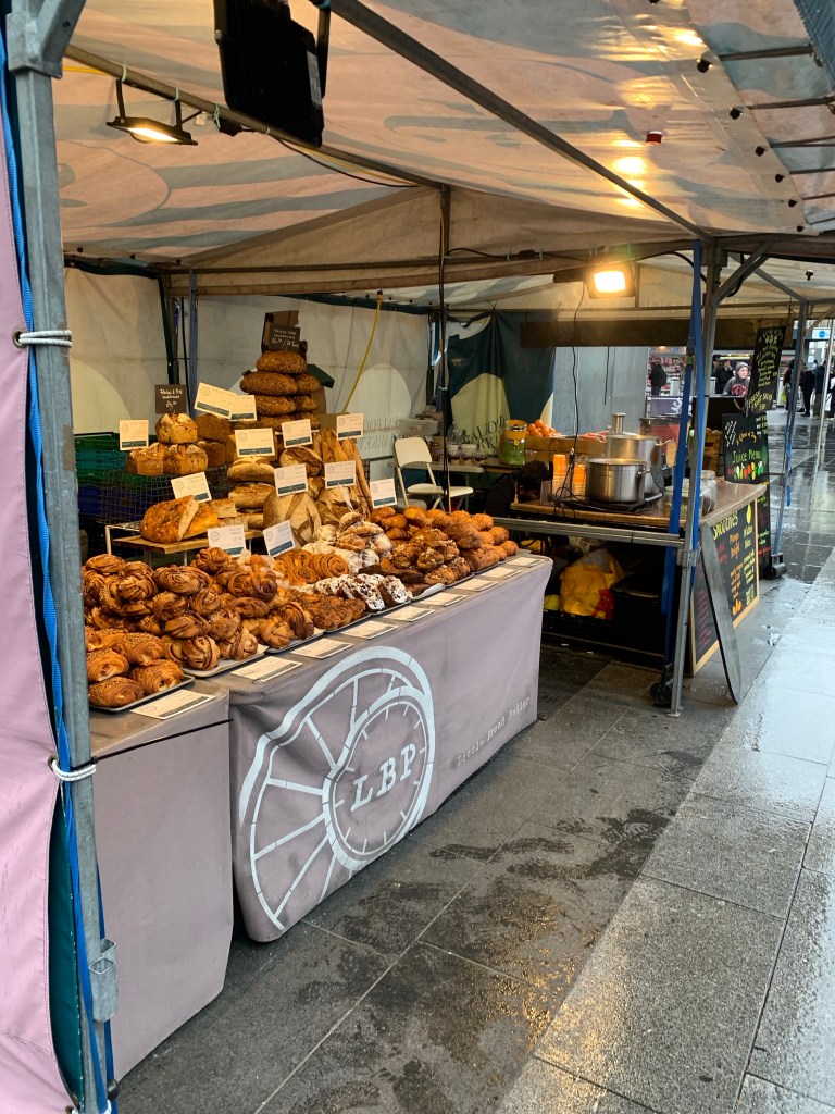 For foodtuffs, they have a little bit over everything. The M&S Market has anything you could want in premade salads, sandwiches, fruit and packaged meals. You are funnelled through it like a maze, ending up at the cash register. The ‘Real Food Market’ stalls outside on the plaza offer fresh cheeses, rolls, wraps, and just about anything you could think of.