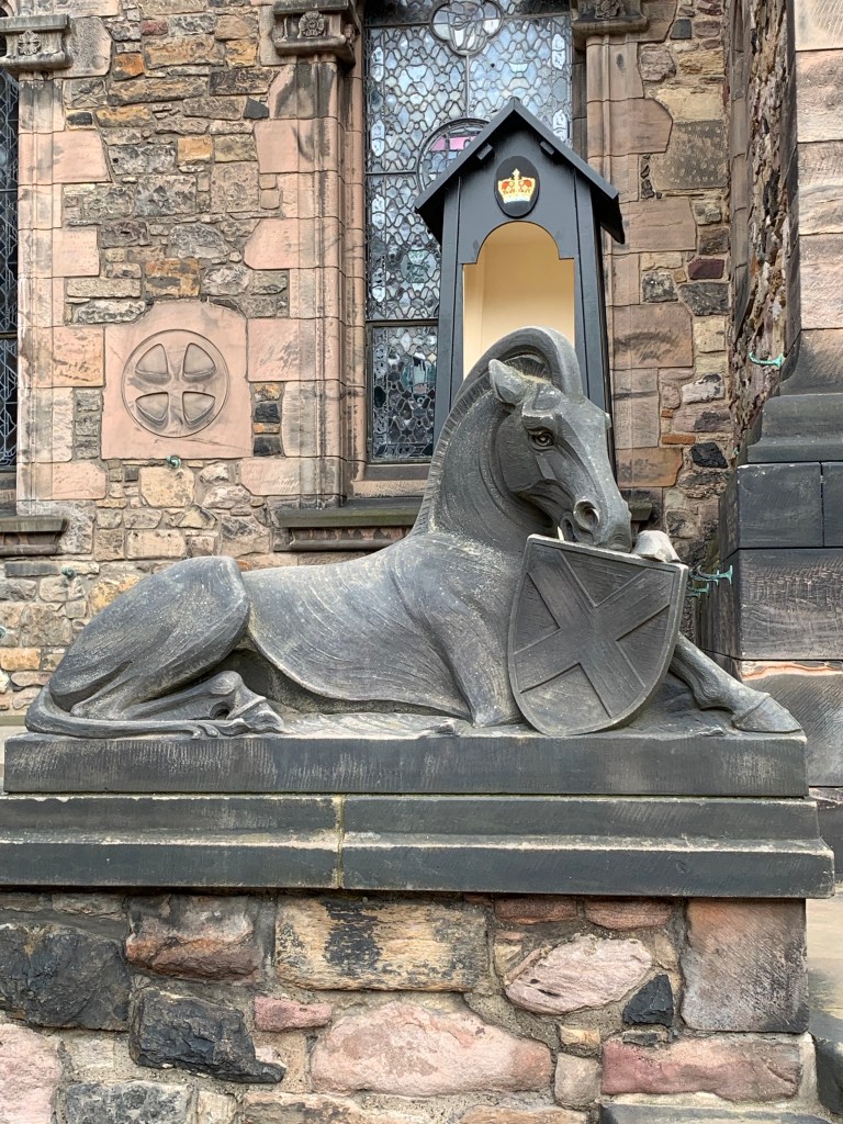 Another spot, one of the highest points actually, is Queen Margaret’s Chapel. This is the oldest surviving building in Edinburgh. Built in the 12th century, it fell into disuse in the reformation. The chapel itself is tiny. But the small stained-glass windows are beautiful, and there is a sense of reverence inside.