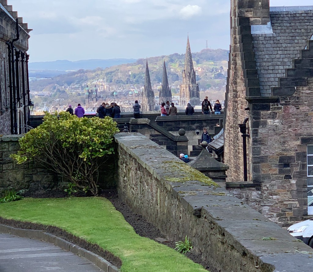 I took a break at the Half Moon Battery (just like it sounds – cannon located around a half circle wall. The coverage of the city was amazing!) and looked at the map. Like Stirling, Edinburgh Castle reminded me strongly of Mont Saint Michel in France. I spent the night there once, and really had a chance to explore. Like the castles, it was walled, and consisted of a steep main road that switched back on itself all the way to the top. The comment was made at both castles that the land itself is part of the protection. I can see that is indeed the case, and the steep, switch back, narrow roads gave the advantage to those who were the inhabitants.