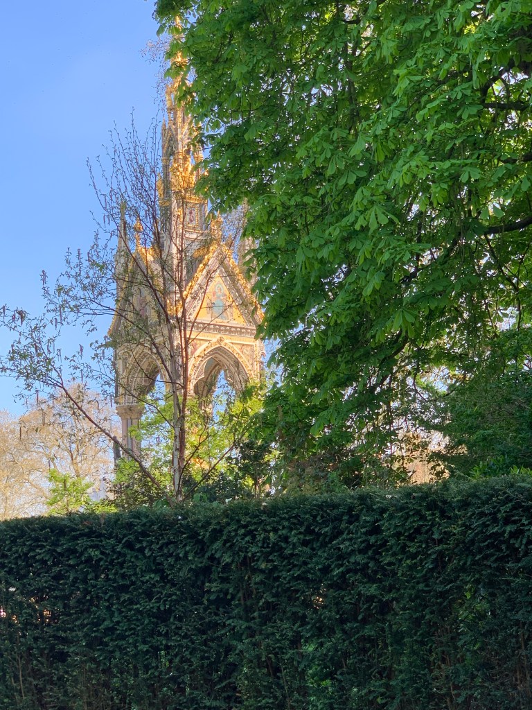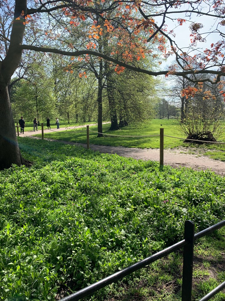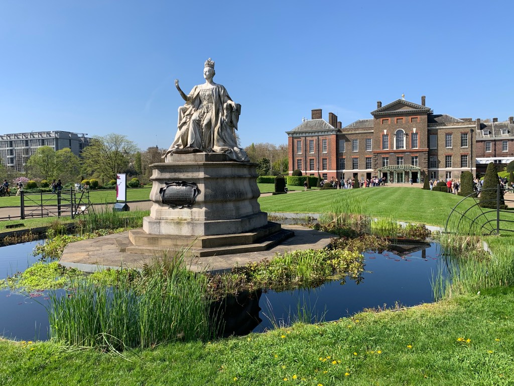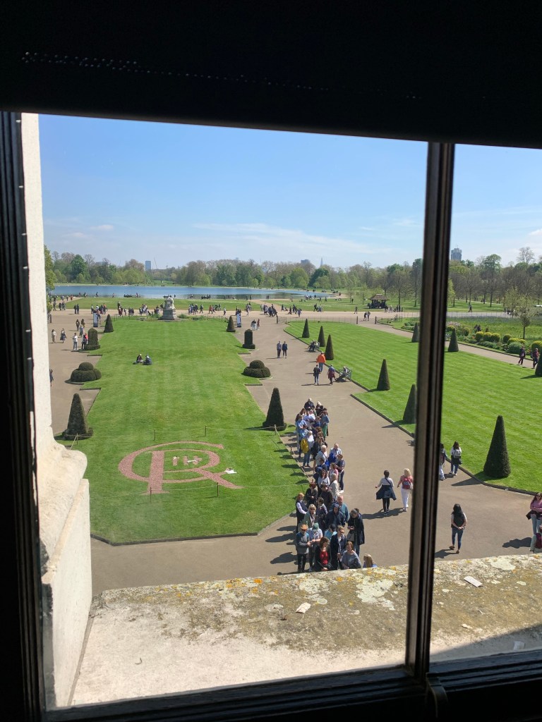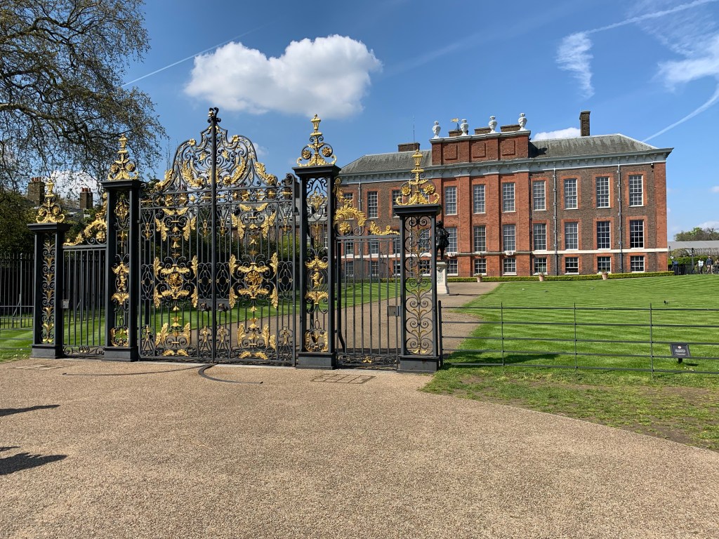 We walked from the hotel to Hyde Park (about 1/2 of a block), and meanered through the park to Kensington Palace where we had tickets at 11am. The Park is beautiful. Parts of it have been left for the wild grasses and flowers, just as we saw at the Tower and in Scotland. It’s a wonderful way to keep the park. Trees had fallen and been left to use for benches. It’s a terrific mix of wild and manicured.