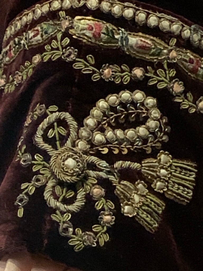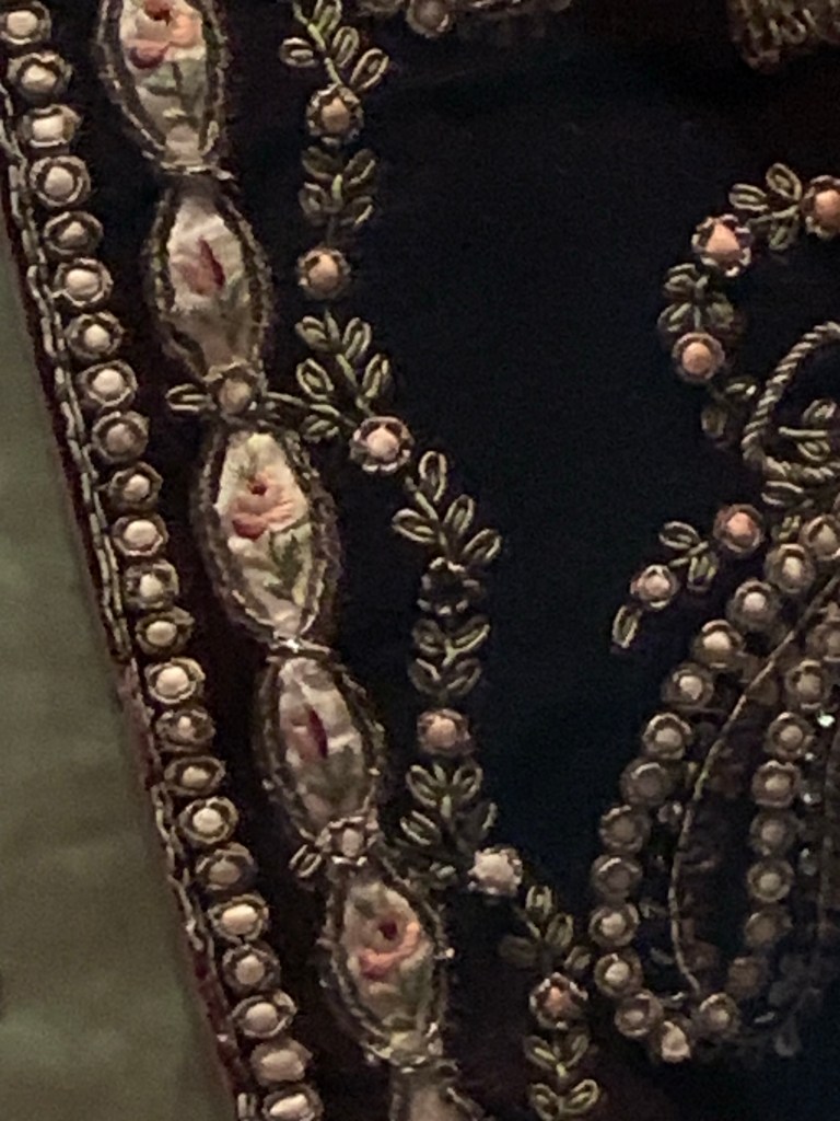 The exhibths included both old and modern clothing, and were beautifully presented. A silver tissue dress that had been carefully preserved and was on display, as were regency gowns and men’s garments. Modern dress was pressent as well – from Blake Lively’s copper architecture inspired dress to Lizzo’s gorgeous gold and black robes. I’ll probably do a seperate post on the clothes and the embroidery, as there is a lot to talk about.
