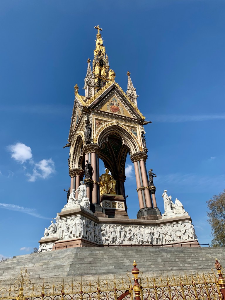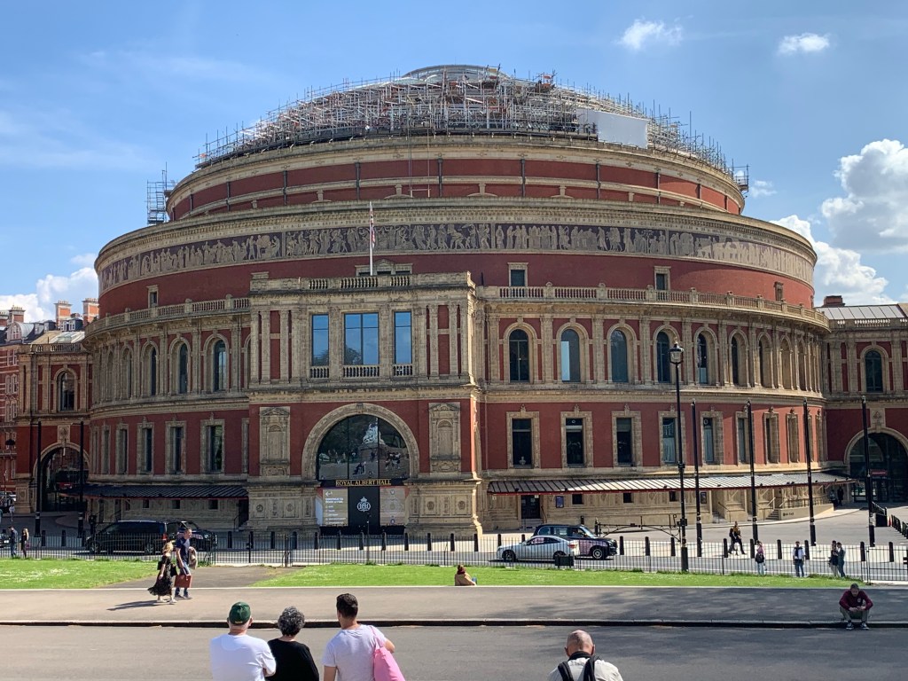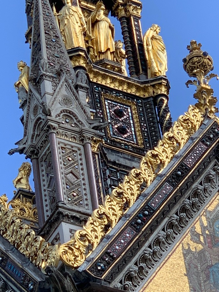 As we worked our way through the gardens, we saw something rise above the tree line, all bright glittering gold. This was the Albert Memorial. I took a ton of pictures, but was never able to get the right light. My apolgies. It is a truly magnificant piece of artwork. Across the street was the Albert Hall.