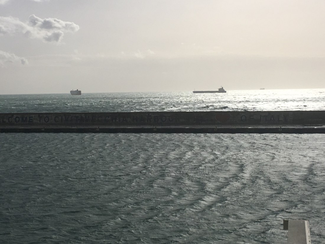 Before I get into today, a word about the storm of a couple of days ago. Sharon and I treated it like it was a normal storm. Sharon especially is used to wind storms up where she lives. But apparently this storm was anything but normal. I guess the consulate didn’t overreact with their warning. … Continue reading Rome/Barcelona Oct/Nov 2018 – Day 7 (I think) 10/31/18 – On the High Seas – at least the Mediterranean